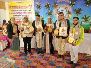 कार्यक्रम में प्रो० नंद किशोर ढोडियाल ‘अरुण’ को हिंदी सेवा,अनिरुद्ध भाटी को पत्रकारिता, आशीष कुमार झा को समाजसेवा, नरेश गिरि को स्वच्छता, अनिकेत गिरि को गौ सेवा के लिए अंग वस्त्र, प्रतीक चिन्ह और शॉल ओढ़ाकर सम्मानित किया।
