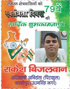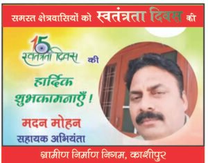 हरिद्वार। 79वां स्वतंत्रता दिवस जिला मुख्यालय विकास भवन रोशनाबाद सहित पूरे जनपद में हर्षोल्लास के साथ मनाया गया। मुख्य विकास अधिकारी श्रीमती आकांक्षा कोण्डे ने विकास भवन परिसर में ध्वजारोहण कर सभी अधिकारियों-कर्मचारियों को निष्ठा और समर्पण के साथ कार्य करने की प्रेरणा दी। उन्होंने भगत सिंह के बलिदान को स्मरण करते हुए कहा कि देशप्रेम से बड़ा कोई धर्म नहीं है। इस अवसर पर उत्कृष्ट कार्य करने वाले कर्मचारियों को प्रशस्ति पत्र देकर सम्मानित किया गया। समारोह में परियोजना निदेशक डीआरडीए के.एन. तिवारी, जिला विकास अधिकारी वेद प्रकाश एवं विभिन्न विभागाध्यक्ष उपस्थित रहे।