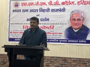 आयोजित विचार गोष्ठी के अवसर पर मुख्य वक्ता के रूप में उपस्थित शिक्षाविद वा अंग्रेजी अखबार के पत्रकार संदीप रावत ने अपने संबोधन में इंगित किया की पूर्व प्रधानमंत्री श्री अटल बिहारी वाजपेई जी का तीर्थनगरी हरिद्वार से बड़ा गहरा नाता रहा हैं। यमुना किनारे जन्मे अटल गंगा नगरी हरिद्वार तकरीबन 15 बार अपने जीवन में आए।उन्होंने बताया कि अटल बिहारी वाजपेई जी अपने जीवनकाल में अनेकों बार हरिद्वार आए तथा उन्होंने यहां की आध्यामिक ऊर्जा को आत्मसात किया।
